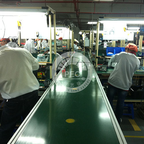 精益生产线又名柔性生产线,采用精益管和木板组装而成,该种线体没有动力输送,全用人工组装时相互转送,本线体可以任意拼装,可以拼装成U型、L型、T型和H型,因此该线体适用于产品品种小量多样、工序精细(工序时间长)或者工序简单的产品组装生产,行现柔性(人性的)作业生产。